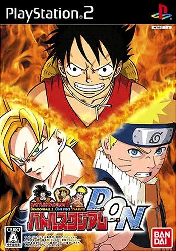 Synopsis : Battle Stadium D.O.N sur Playstation 2 est un jeu de baston relevant du cross-over puisqu'il fait s'affronter les personnages des mangas Dragon Ball, One Piece et Naruto. Retrouvez donc Luffy, Sangoku, Kakashi, Trunks et toute la clique lors de combats en arène où les pouvoirs de chacun sont mis en avant. Ramassez des bonus pour vous booster en plein combat dans ce jeu proche de Super Smash Bros.